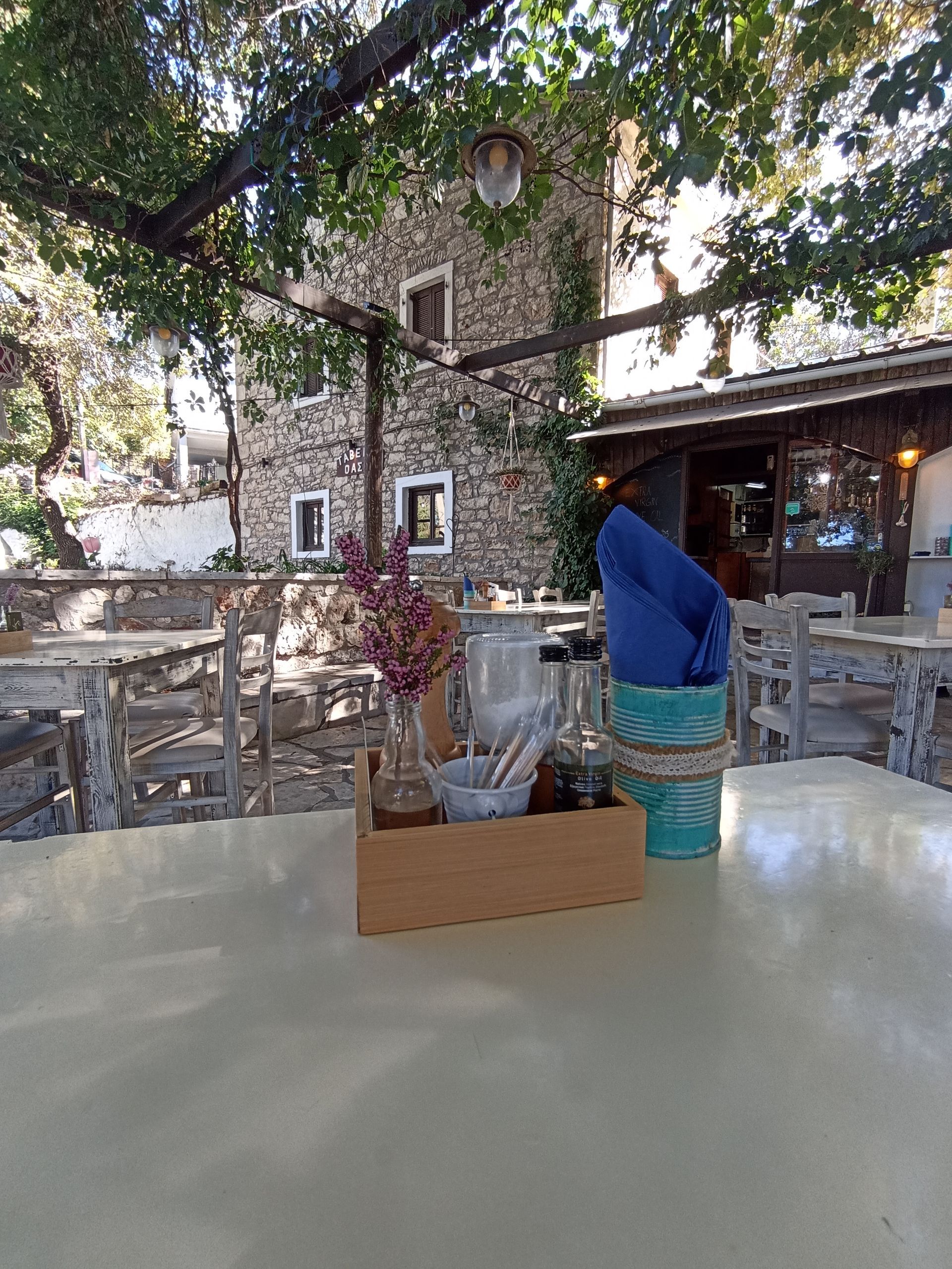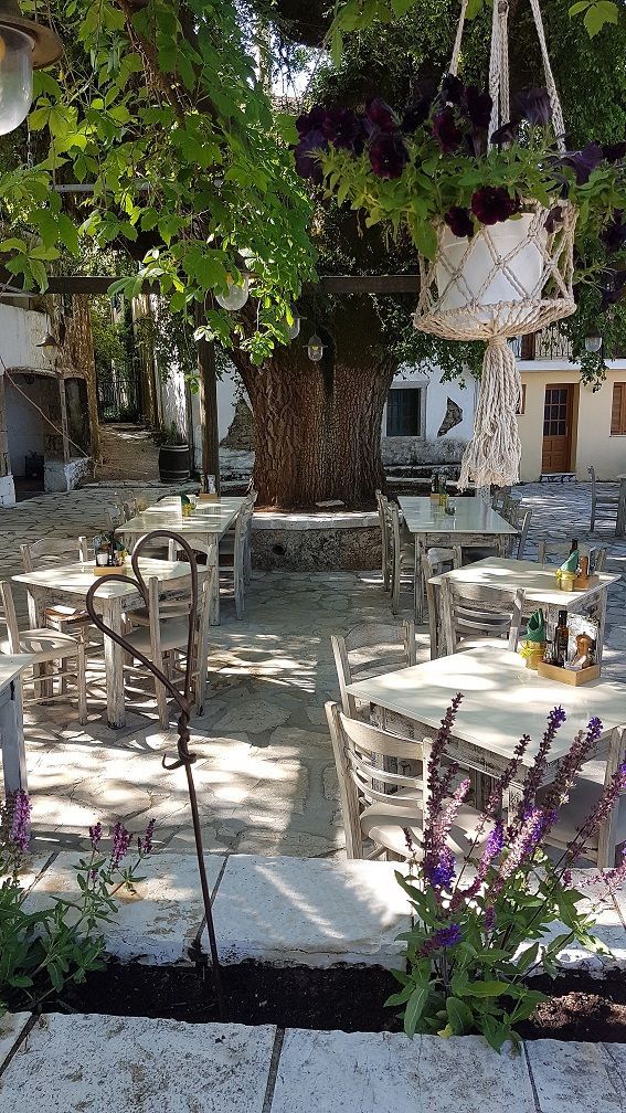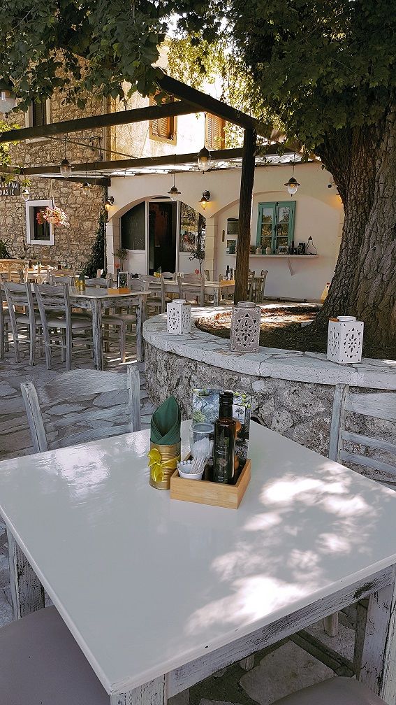 Die Taverne wurde bereits 1988 eröffnet. Eine etwas dreihundert Jahre alte Ulme spendet in der Sommerhitze Schatten.
